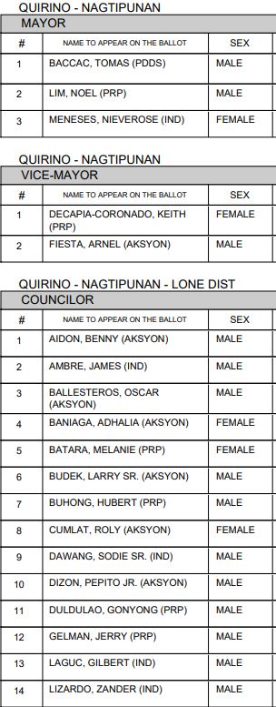 Here is the list of aspiring candidates in the town of Nagtipunan, Quirino (Region 2).